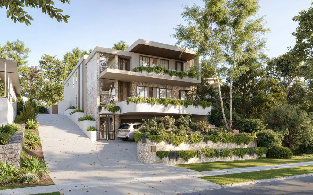 Set within the leafy surrounds of Winston Hills, this residence is designed to embrace natural light and integrate with its environment. The architecture is grounded in natural stone, complementing